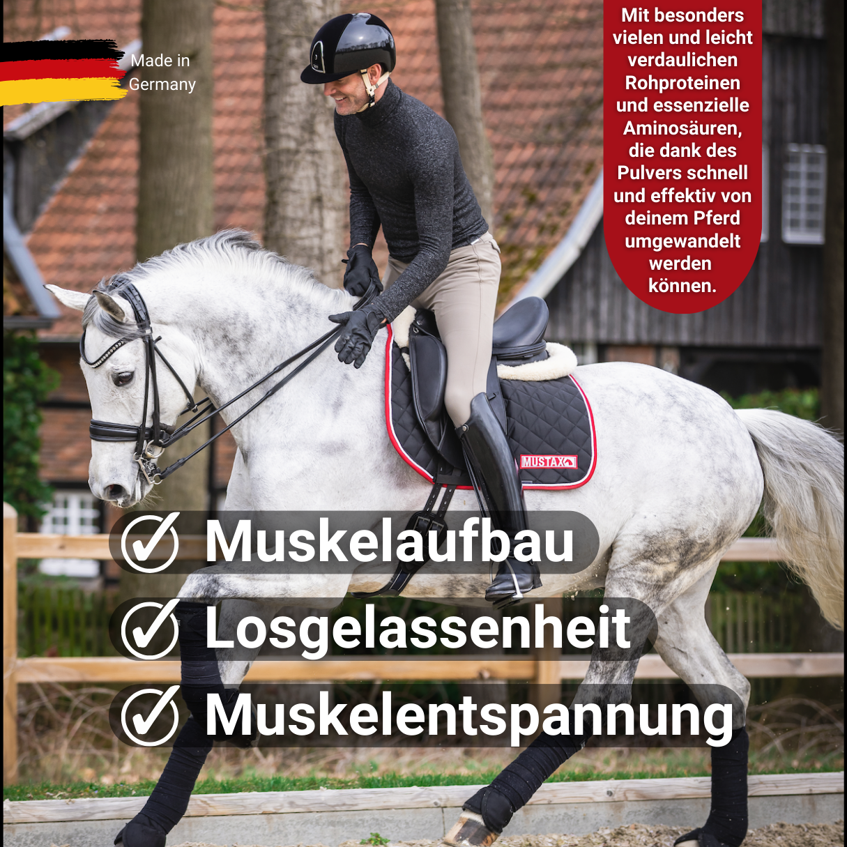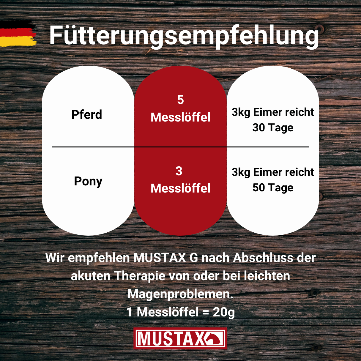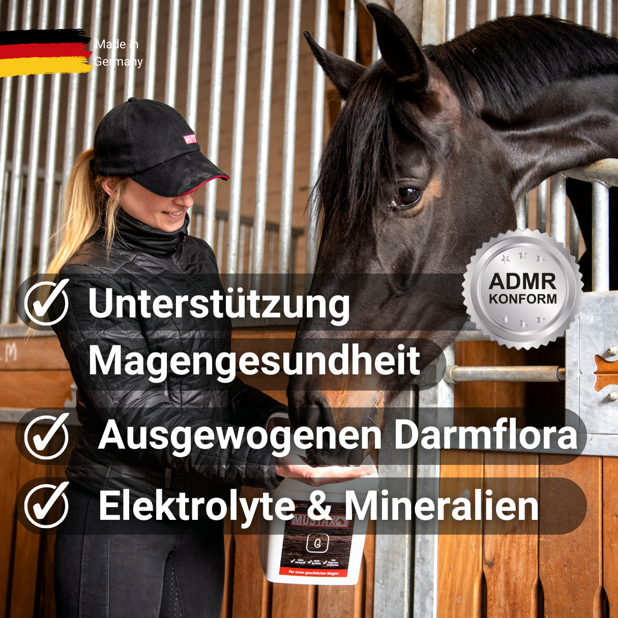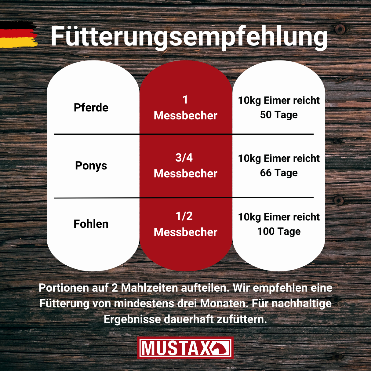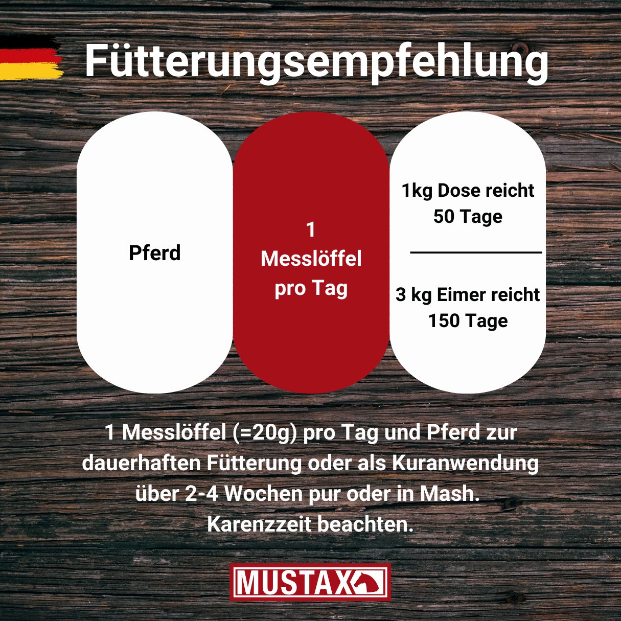 MUSTAX VIT nabízí dokonale vyváženou směs všech důležitých vitaminů v optimálních dávkách s vitaminy A, D3, E, C, B1, B2, B6 a B12, čímž podporuje imunitní systém, kondici a vitalitu vašeho koně a účinně předchází nedostatku vitaminů.